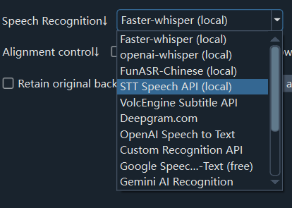 - STT Speech Recognition API: Another open-source project that requires self-deployment. After deployment, enter the API address into the software to use it.